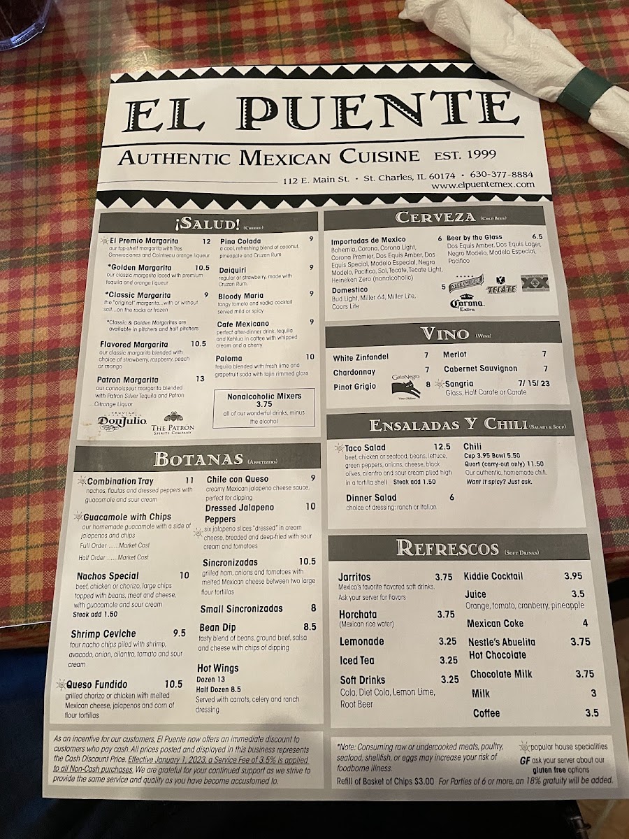 Welcome to El Puente, a hidden gem nestled at 112 E Main St, St. Charles, IL. Renowned for its authentic Mexican cuisine, El Puente offers an array of mouth-watering dishes that celebrate traditional flavors. Start your culinary journey with delightful side orders like avocado slices and Mexican fried potatoes, perfect for pairing with their signature sauces.